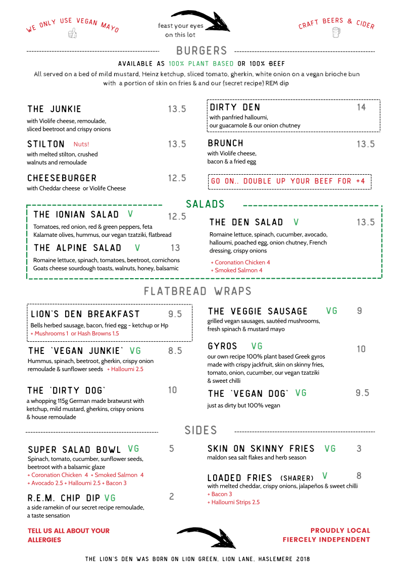 our own recipe 100% plant based Greek gyros made with crispy jackfruit, skin on skinny fries, tomato, onion, cucumber, our vegan tzatziki & sweet chilli